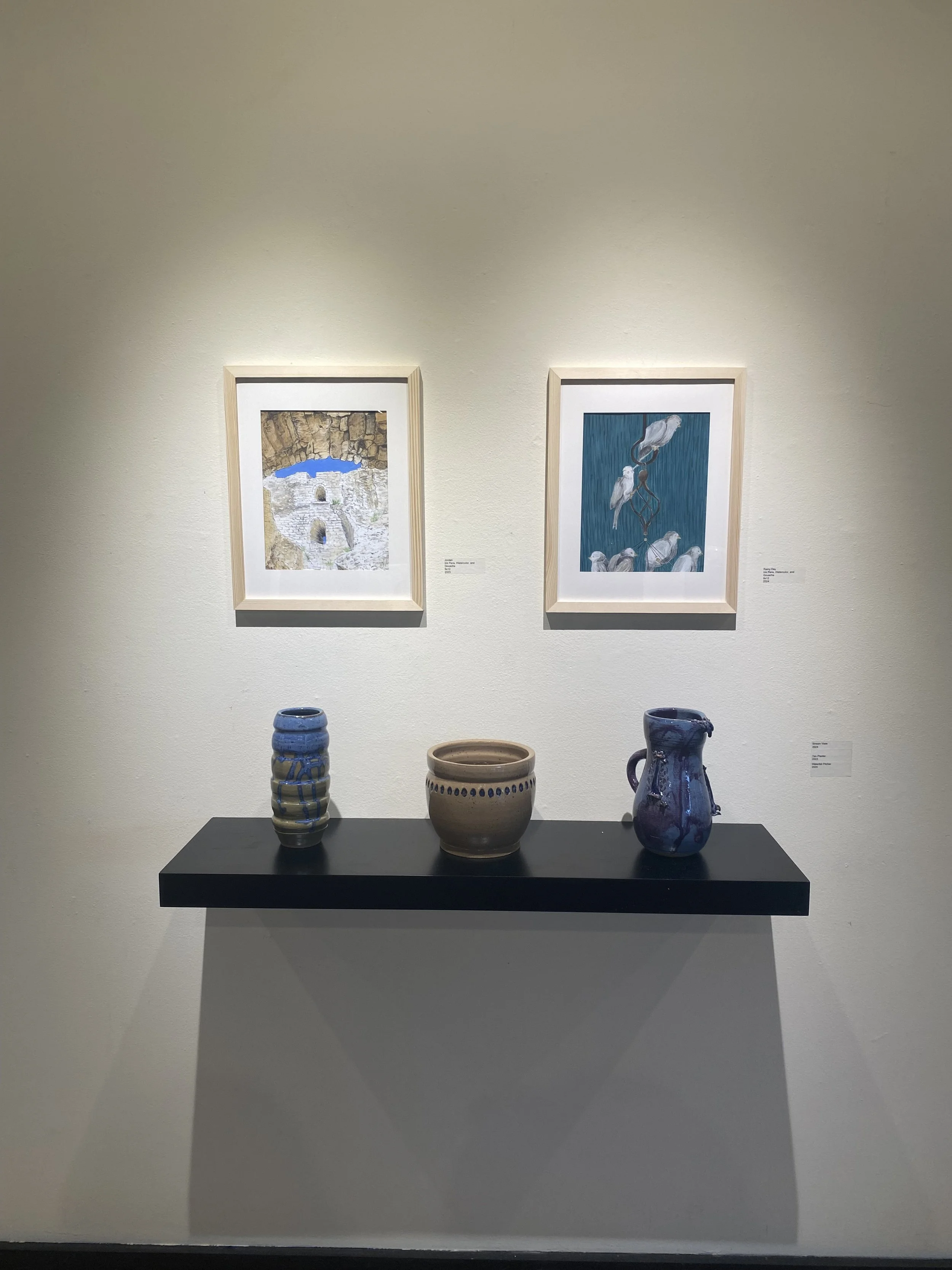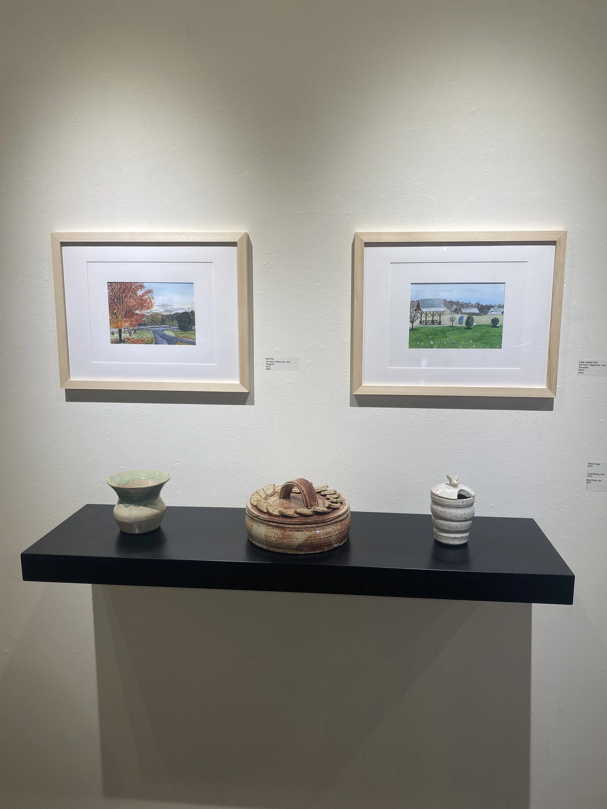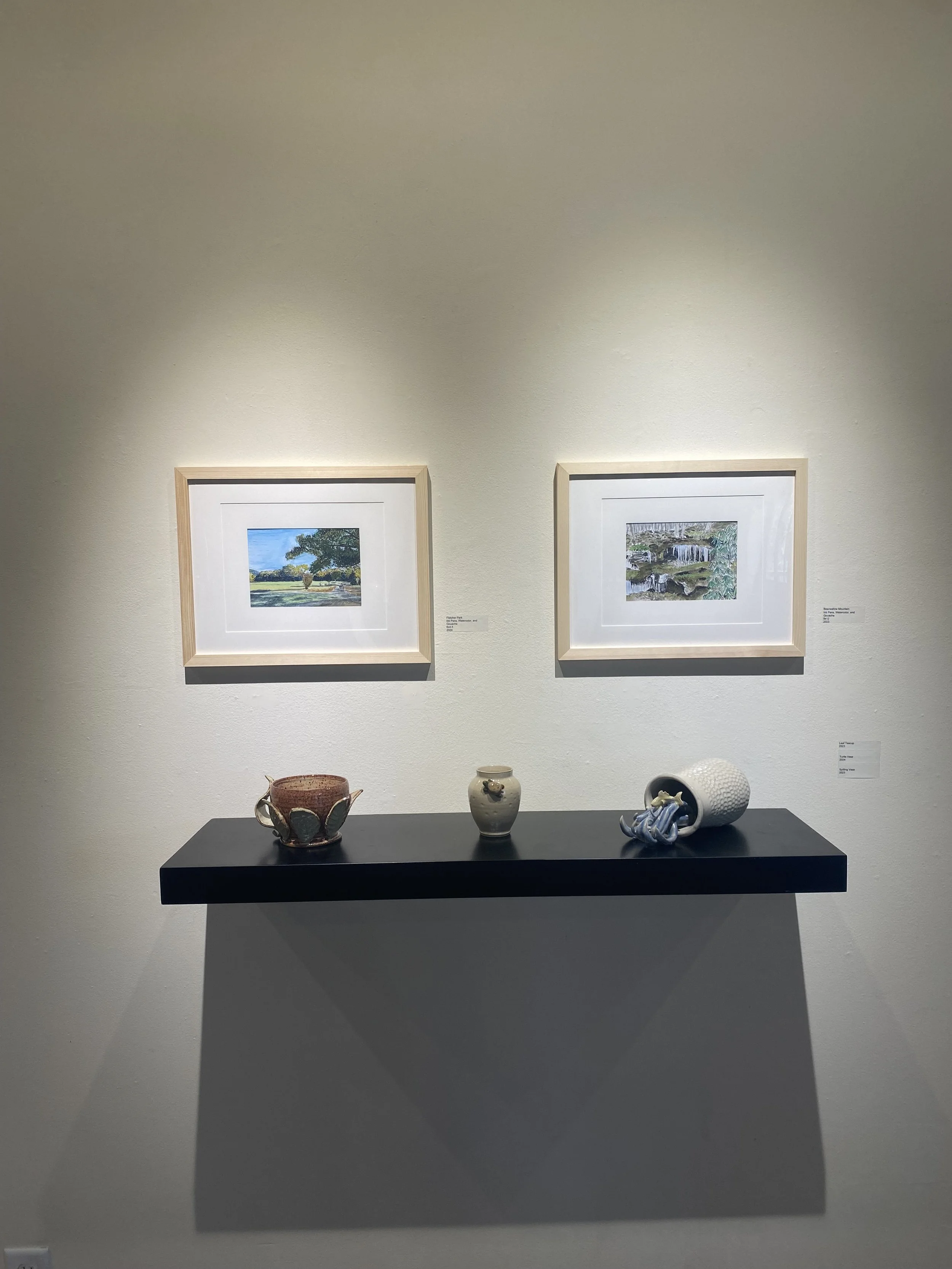 The focus of my BFA Senior Solo Show was to explore the insignificant and bring light to the unnoticed. This show was meant to demonstrate how the seemingly ordinary can be extraordinary and beautiful if we just look closer and pay attention to the beauty that surrounds us. The mediums featured in this show were ceramics, ink Drawings with watercolor painting, and oil painting. Images from the gallery are featured below.