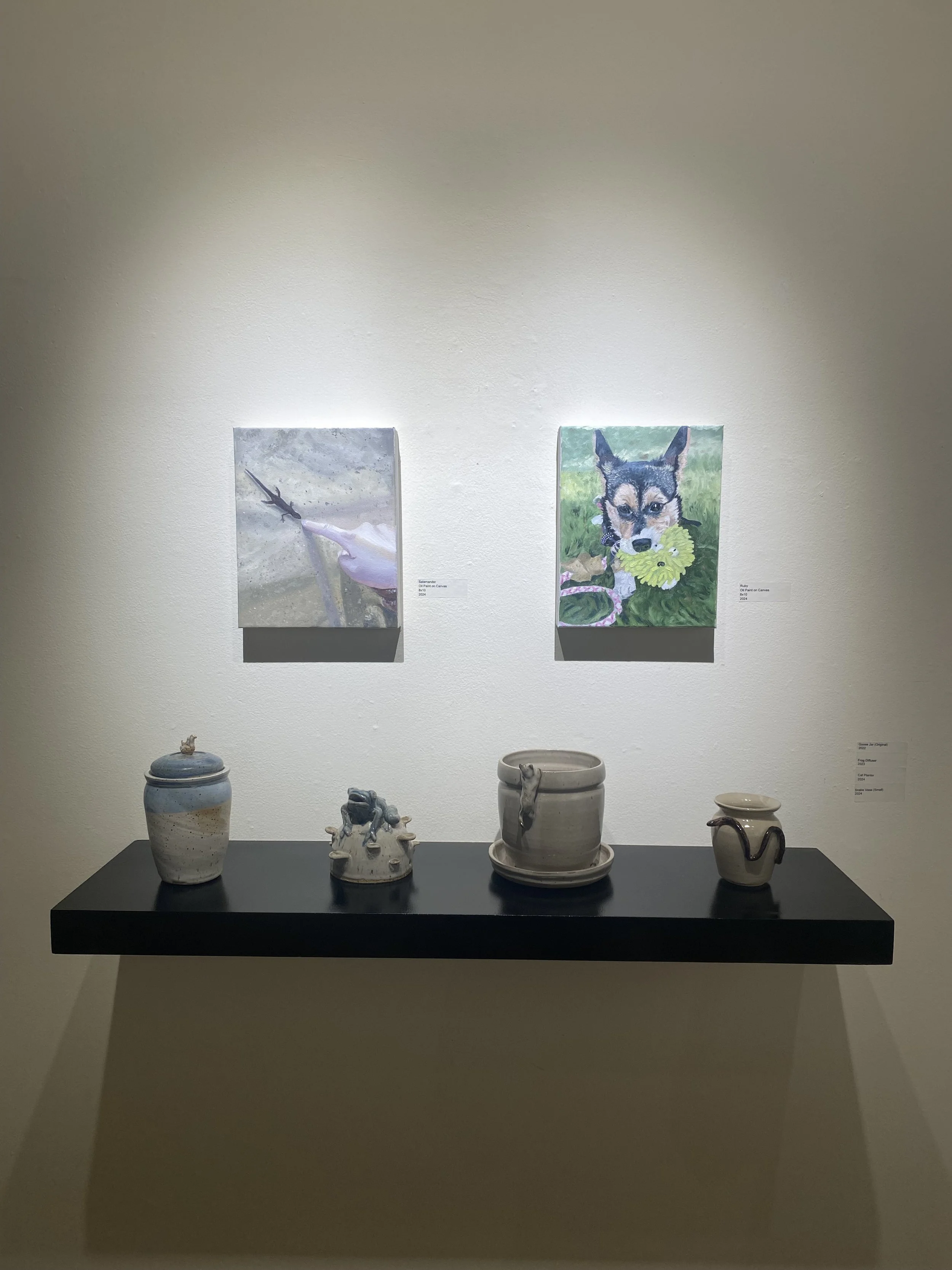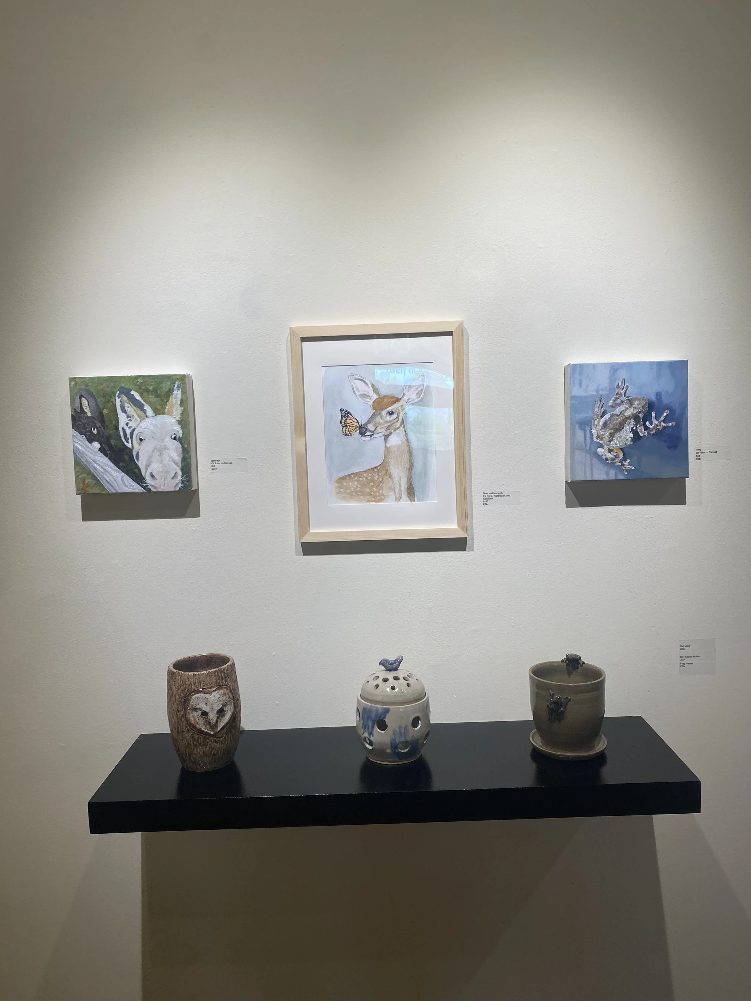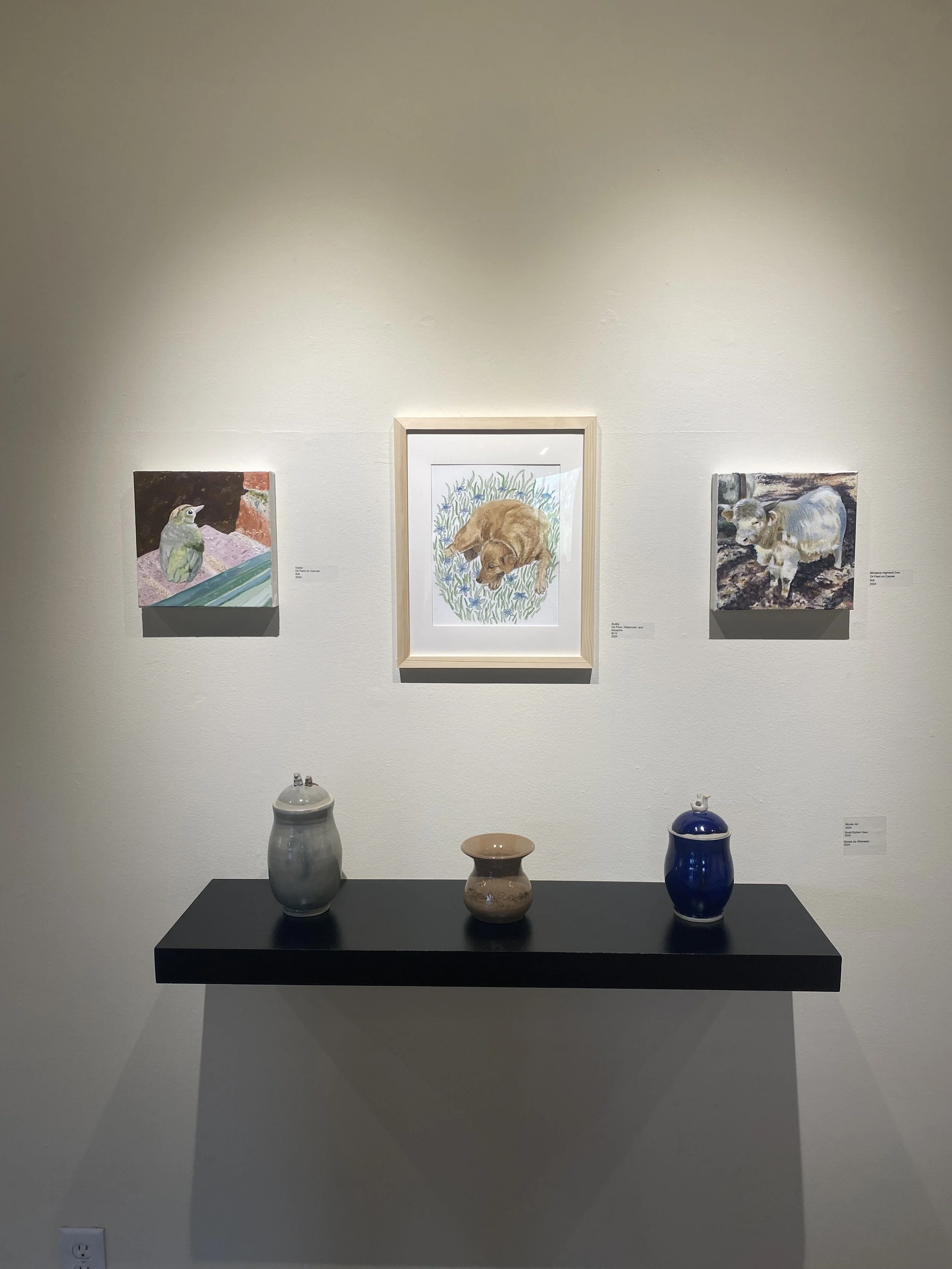 The focus of my BFA Senior Solo Show was to explore the insignificant and bring light to the unnoticed. This show was meant to demonstrate how the seemingly ordinary can be extraordinary and beautiful if we just look closer and pay attention to the beauty that surrounds us. The mediums featured in this show were ceramics, ink Drawings with watercolor painting, and oil painting. Images from the gallery are featured below.